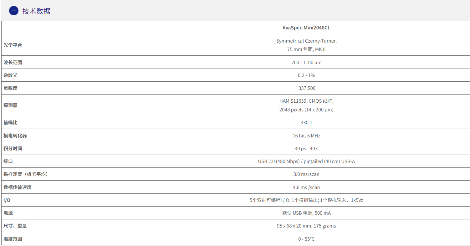 Mini-CL系列可配備2048像素CMOS探測器和4096像素陣列。 采用CMOS探測器,具有UV / NIR響應(yīng),達到0.09 nm的分辨率。 低雜散光設(shè)計允許雜散光水平低至0.2%,快速響應(yīng)時間的數(shù)據(jù)傳輸速度高達4.6 ms /掃描,積分時間范圍為30μs至50 s。